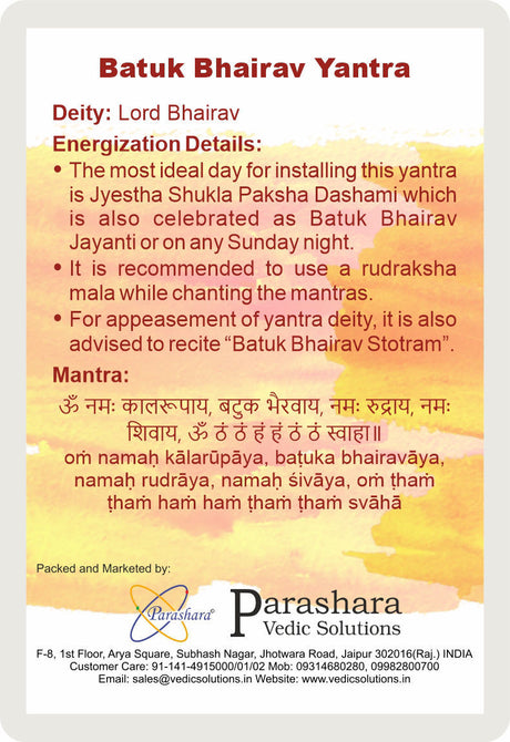 Arkam Batuk Bhairav Yantra - Gold Plated Copper - (6 x 6 inches, Golden)