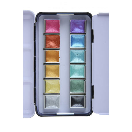 Brustro Metallic Watercolour Half Pans Set of 12