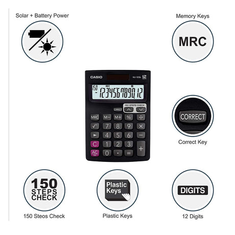 Casio MJ 120D Desktop Calculator with Tax Keys Dual Power