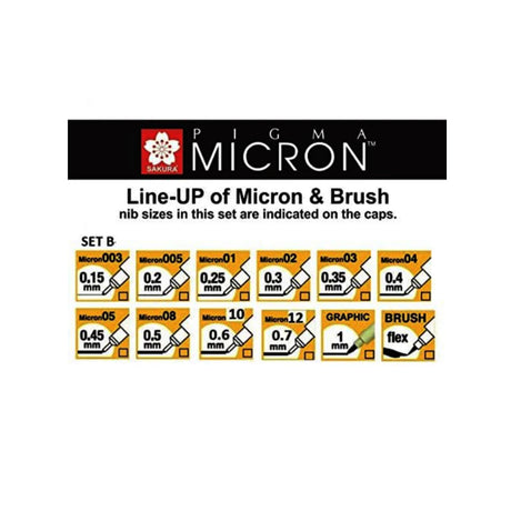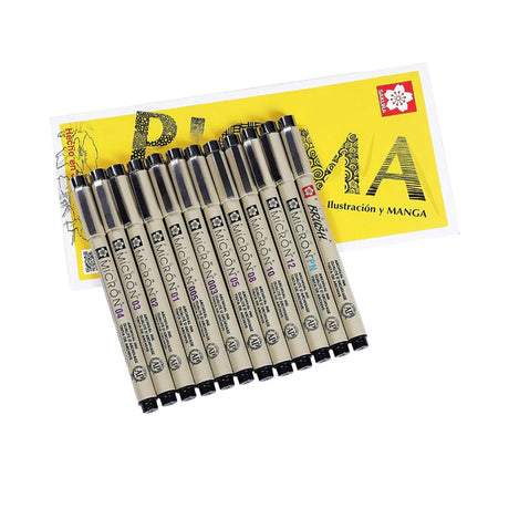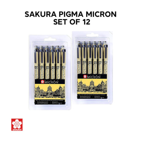 Sakura Pigma Micron Set of 12 Fineliners Assorted Nibs Black