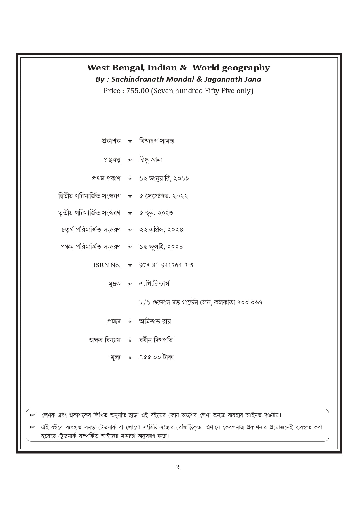 পশ্চিমবঙ্গ, ভারতে ও বিশ্ব ভূগোল (বাংলা সংস্করণ)