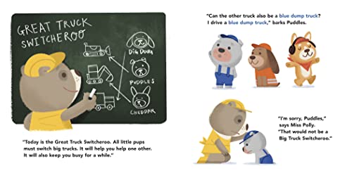Details: Cute Pups! Big Trucks! These three puppies must swap their beloved trucks in this original board book that's perfect for toddlers with big building dreams.