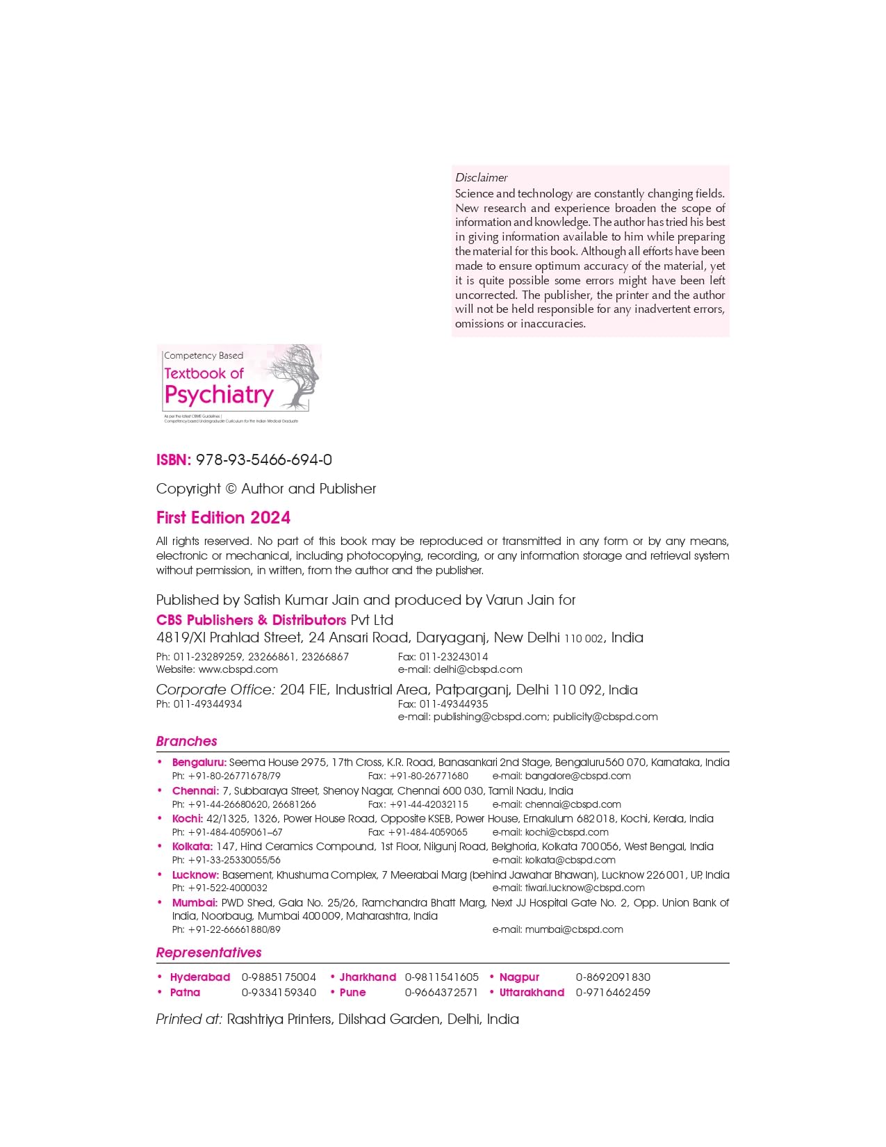 Details: This book covers all the competencies in psychiatry as per the Competency Based Undergraduate Curriculum prescribed by National Medical Commission for Indian medical graduates. The text has been written as a conceptual framework and in a lucid manner to make it more interesting and engrossing for the undergraduate students. Some difficult to understand topics such as psychoanalysis, bipolar disorder, schizophrenia, personality psychology have been written in such a manner that makes it easy to understand and memorise. The Textbook also covers some basic topics which are necessary to have an in-depth understanding of psychiatry, such as neuroanatomy and neurophysiology pertaining to psychiatry, and psychopharmacology. Simple and easily reproducible illustrations and tables have been introduced at relevant places in the text to help the undergraduate student understand the core concepts in psychiatry better, especially the neurobiological aspects of psychiatric illnesses.
