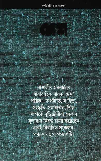 বাংলা বৌদ্ধিক ও সাহিত্য সংস্কৃতির উপর, বিশেষ করে এর সুবর্ণজয়ন্তী উদযাপনের প্রেক্ষাপটে, দেশ পত্রিকার স্থায়ী প্রভাব বুঝতে আগ্রহীদের জন্য এই বইটি একটি অপরিহার্য পাঠ।