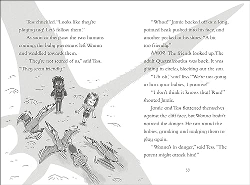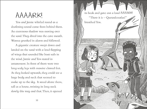 Meet Jamie, a member of the Dinosaur Club. They are a network of kids around the world who love to share dinosaur knowledge, help identify fossils, post dino discoveries, and chat about all things prehistoric. Jamie has just moved to Ammonite Bay, a stretch of coastline famous for its fossils. He is busy exploring when he discovers some dinosaur footprints and is transported back to the time of the dinosaurs! It sounds like Jamie needs some help from the Dinosaur Club when he comes across a massive pterosaur called Quetzalcoatlus, the largest animal in history ever to fly!