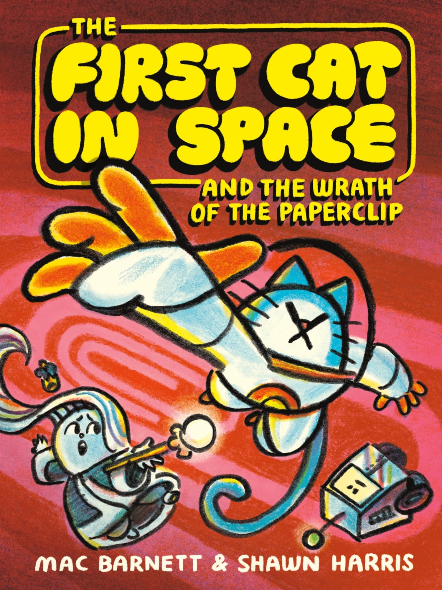 Details: Award-winning creators Mac Barnett and Shawn Harris are back with the third volume in the bestselling The First Cat in Space graphic novel series! Prepare to meet an evil paperclip, space dinos, and another adorable bunny. Mac & Shawn also reveal their tried-and-true method of scoring free dessert at restaurants.