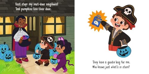 This cheerful and celebratory board book shows kids visiting teal pumpkin homes and receiving trinkets such as stickers, little toys, and more for an allergy-inclusive Halloween night!