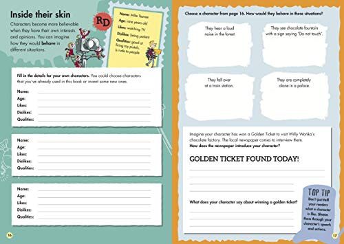 Invent terrific heroes and revolting villains to star in your story with the World's NUMBER ONE Storyteller! Perfect for home learning, pick up your pen and join Charlie and Mr Wonka to learn how to write the MOST MAGNIFICENT characters. These super fun activities will help you to:· Improve language and vocabulary skills· Develop the tools you need to write your own stories· Learn how to create heroes and villains with their own interests, behaviours and backstoriesRoald Dahl's Creative Writing will spark your creativity, build your confidence and inspire you through the wonderful worlds of Roald Dahl's best loved stories! Filled with top tips and ideas boxes, each book introduces techniques and methods to help you plan and write a phizz-whizzing story of your own!