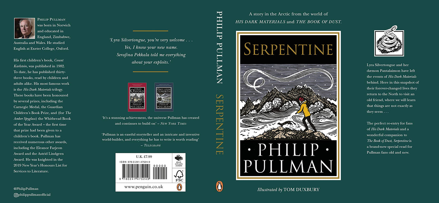 Details: Lyra silvertongue, you're very welcome... Yes, I know your new name. Serafina pekkala told me everything about your exploits' Lyra and her daemon pantalaimon have left the events of his dark materials far behind. In this snapshot of their forever-changed lives they return to the North to visit an old friend, where we will learn that things are not exactly as they seem... Illustrated throughout by Tom duxbury, the perfect re-entry for fans of his dark materials and a wonderful companion to the book of dust, serpentine is a brand-new special read for Pullman fans old and new.