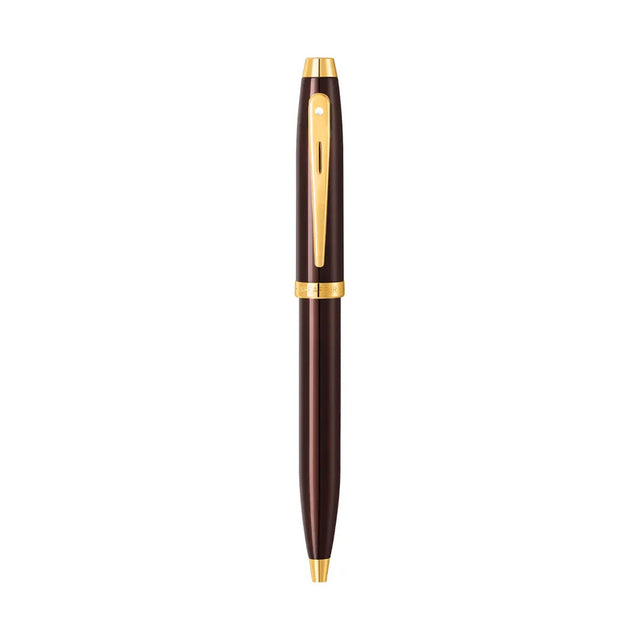 Sheaffer 100 Coffee Brown Ballpoint Pen with PVD Gold Tone Trim