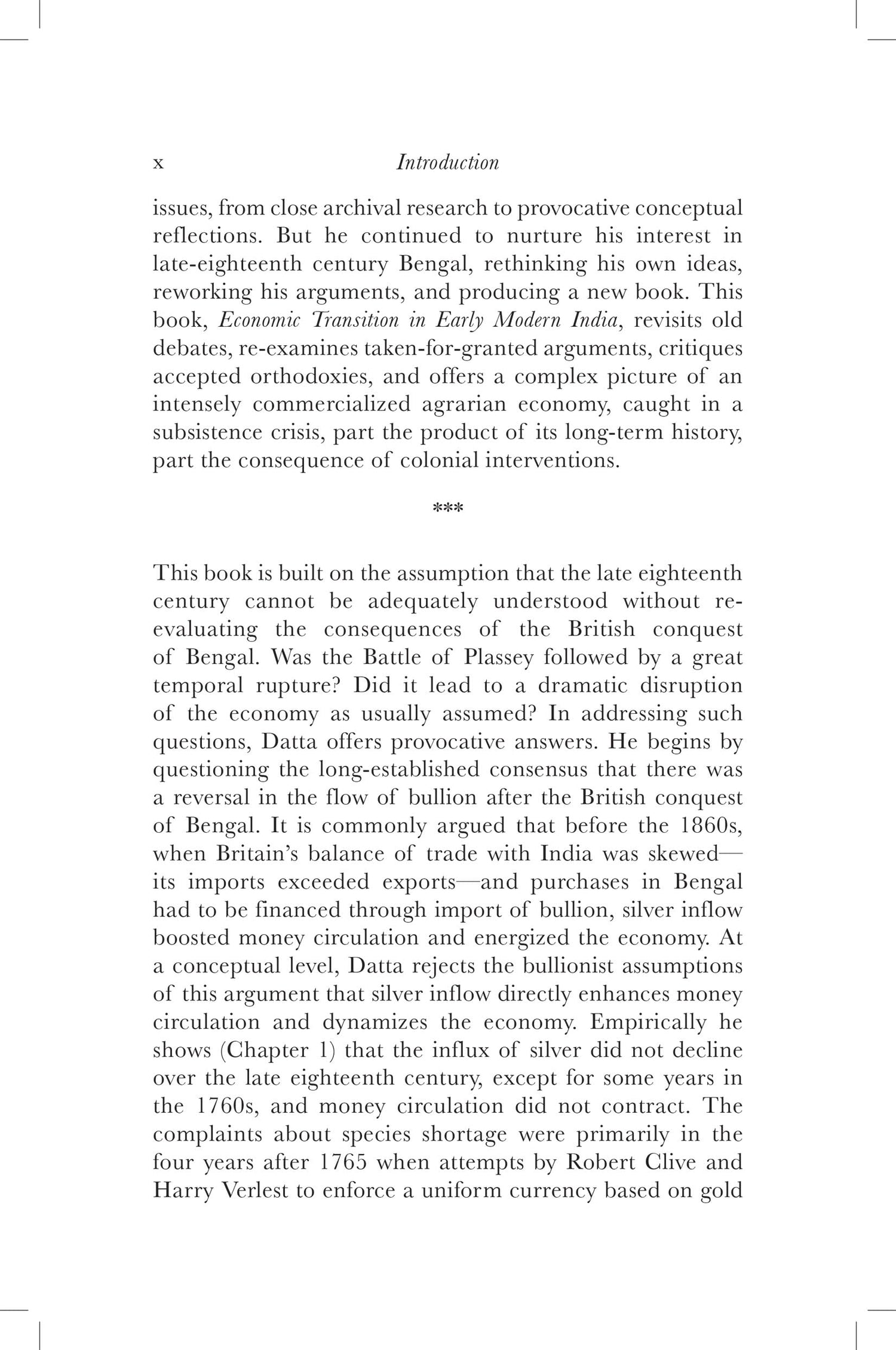 Details: This book examines how the agrarian society of Bengal was transformed in the decades after the British conquest. While the focus is local, the arguments have a wider resonance. Datta revisits old debates, re-examines established orthodoxies, offers provocative arguments, and persuades us to rethink the history of late Mughal and early modern India. His arguments proceed at two levels. At one, he explores the working of markets: estimating bullion influx, trade fluctuations, price movements, and commodity flows. He shows how the internal trade between Bengal and other regions expanded, bazars and haats proliferated, with merchants and markets creating an interlocking network tying the towns to the countryside. At another level, Datta zooms into the rural areas to recover the lives of peasants. We see them engaged in intensive cultivation of their land with domestic labour, producing rice, lentils, mustard, mulberry and cotton, participating in an increasingly complex market network, negotiating monsoons and fluctuating harvests.