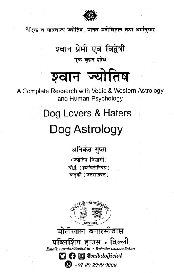 **"Shwan Jyotish"** by **Yogiraj Aniket Gupta** provides a unique perspective on how **astrology** can be applied to understand and care for **dogs**. By looking at a dog’s **astrological chart**, owners can gain insights into their pet’s **personality**, **health**, and **behavior**, and take steps to improve their well-being. This book presents a fascinating exploration of how the ancient practice of **Vedic astrology** can be extended beyond human beings to the animal kingdom, especially dogs.