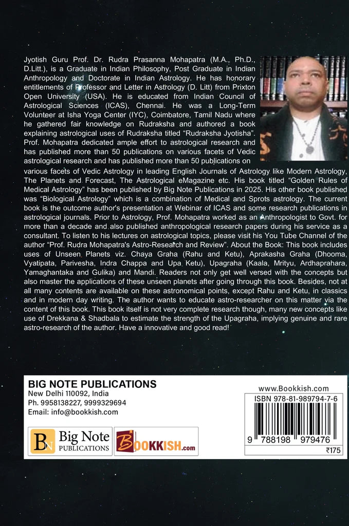 Unseen Planets provides an in-depth exploration of lesser-known celestial bodies in Vedic astrology, including Chaya Graha (Rahu and Ketu), Aprakasha Graha (Dhooma, Vyatipata, Parivesha, Indra Chappa, Upa Ketu), Upagraha (Kaala, Mrityu, Ardhaprahara, Yamaghantaka, Gulika), and Mandi. Rudra Prasanna Mohapatra combines classical wisdom with modern insight, offering practical applications and guiding readers to master these elusive planets. Unique concepts, such as using Drekkana and Shadbala to estimate the strength of Upagraha, highlight the author’s original astro-research. This book is an essential resource for students, practitioners, and researchers eager to expand their understanding of Vedic astrology beyond Rahu and Ketu, providing rare and valuable knowledge for advanced astrological study.