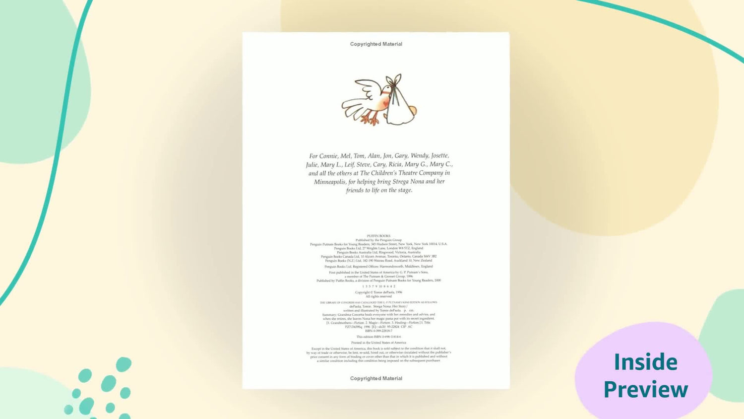 Details: This is the beloved Strega Nona's own story, every detail just as she remembers it, from her childhood with Grandma Concetta, who trained young Nona and her best friend Amelia, to her early days in the little house on the hill and the happy moments when she met Big Anthony and Bambolona. It is the story of a most fascinating life that has influenced and delighted countless children and adults all over the world, and it all starts with the night Strega Nona was born, when the wind was blowing dark storm clouds across the hills . . .