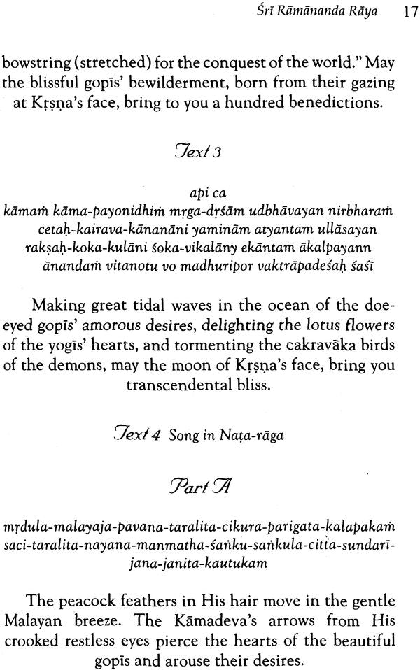 The verses of the Jagannatha-vallabha-nataka of Sri Ramananda Raya are frequently found in the text of Caitanya-caritamrta by Krsnadasa Kaviraja. In a purport to Caitanya-caritamrta, Srila Prabhupada wrote.