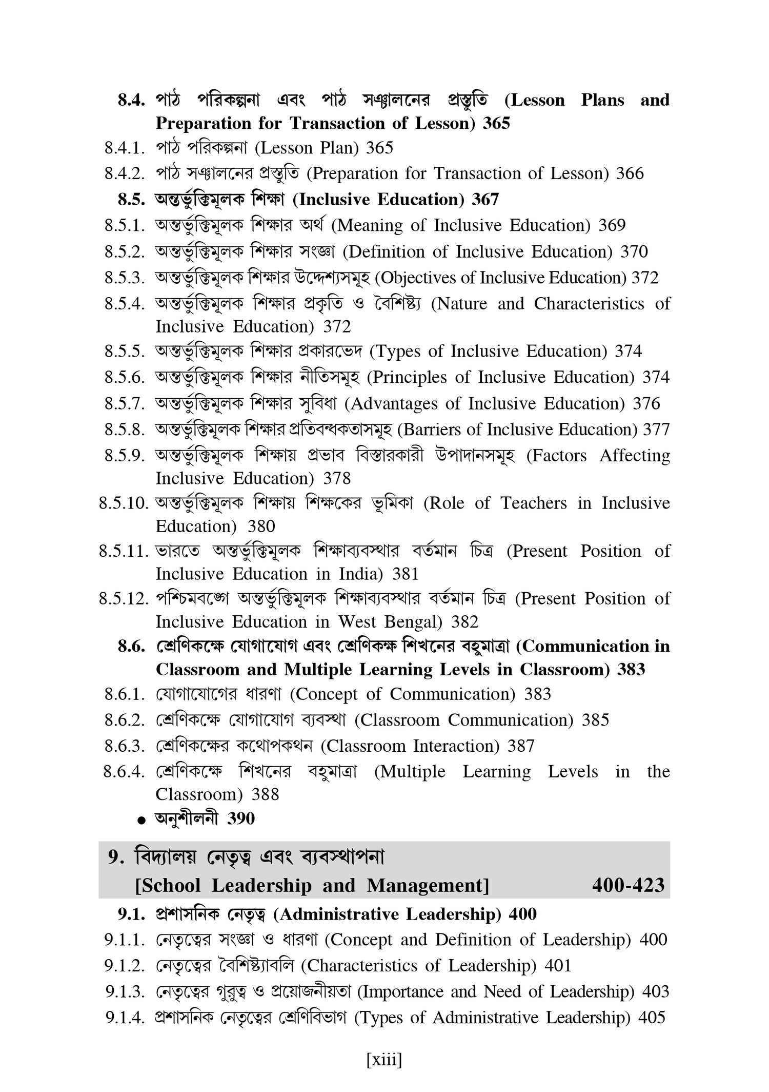 - Lesson plans, Preparation for transaction and inclusive education