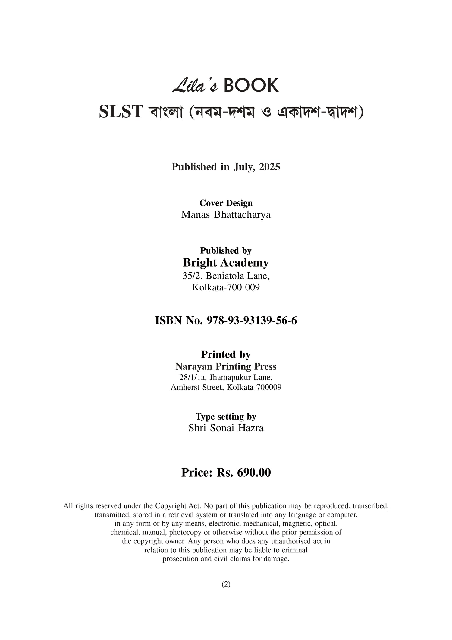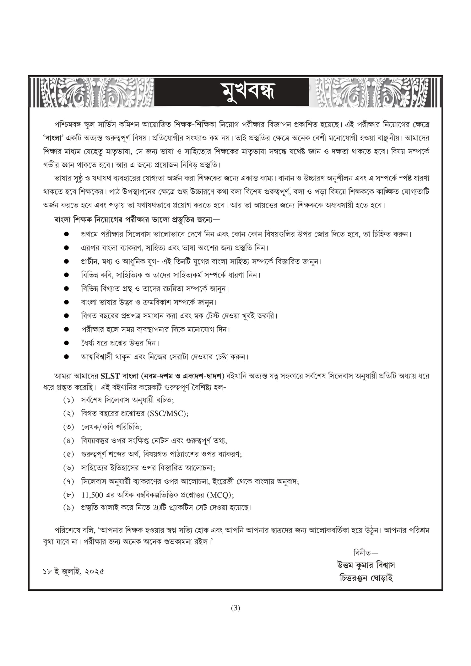 School Service Commission O Madrasa Service Commission SLST Bangla (Nobom-Doshom & Ekadosh-Dwadosh) 2025 (Bengali Version)