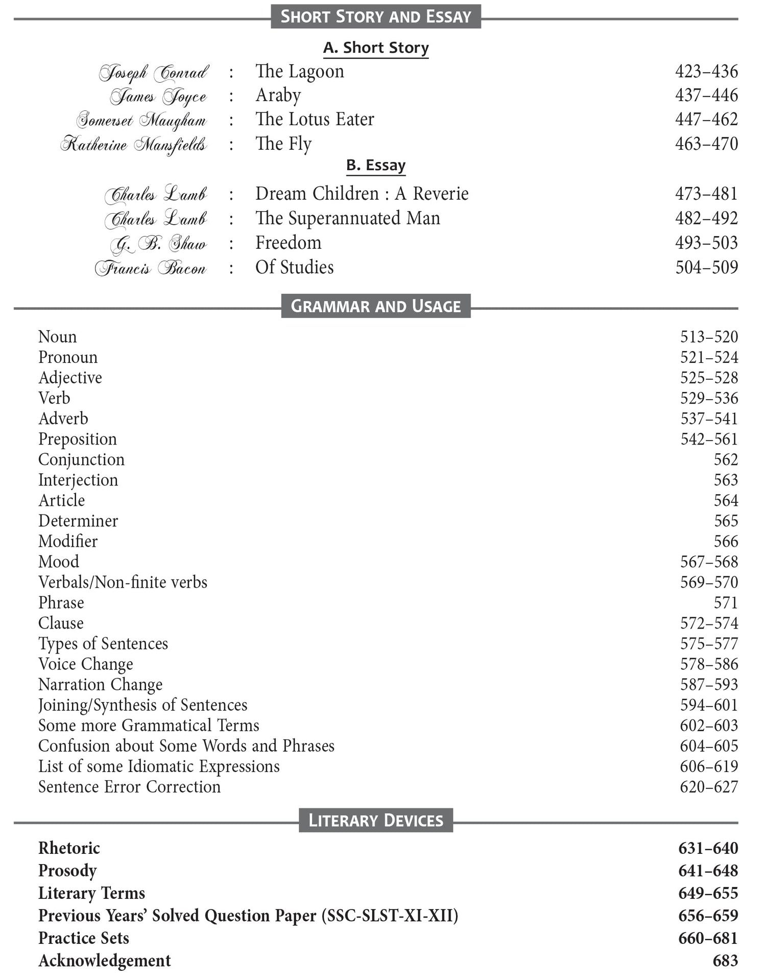 This book is designed to help SSC/MSC aspirants at the XI-XII level in English, offering an in-depth discussion of the syllabus' textual portions.