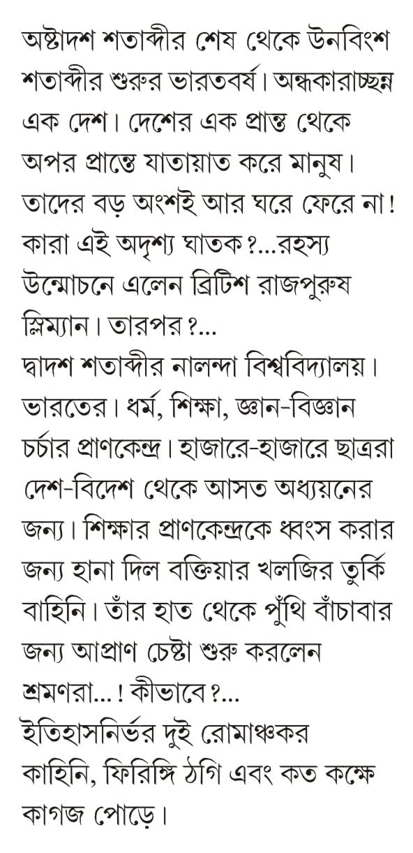 Details: This book comprises of 2 novels steeped in hisory, Firingi Thogi and Koto Kokkhe Kagaj Pore,both enlightening and engrossing.