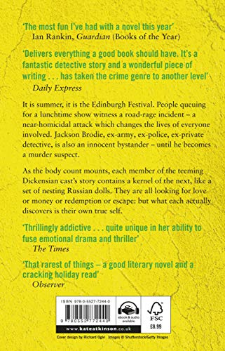 Details: An absolute joy to read. The pleasure of one Good turn lies in the ride, in Atkinson's wry, unvanquished characters, her swooping, savvy, sarcastic prose and authorial joie de vivre' guardian the second Jackson Brodie novel (after case histories): literary crime from the prizewinning, number-one bestselling author of big sky and Transcription. bit is summer, it is the Edinburgh festival. People queuing for a lunchtime show witness a road-rage incident - a near-homicidal attack which changes the lives of everyone involved. Jackson Brodie, ex-army, ex-Police, ex-private detective, is also an innocent bystander - until he becomes a murder suspect. As the body count mounts, each member of the teeming Dickensian cast's story contains a kernel of the next, like a set of nesting Russian dolls. They are all looking for love or money or redemption or escape: but what each actually discovers is their own true self.