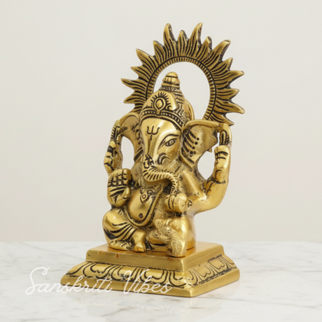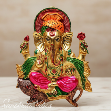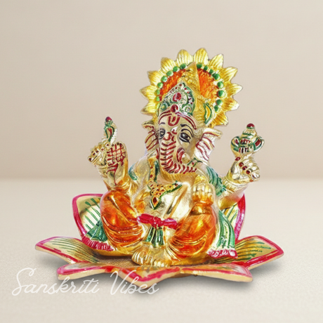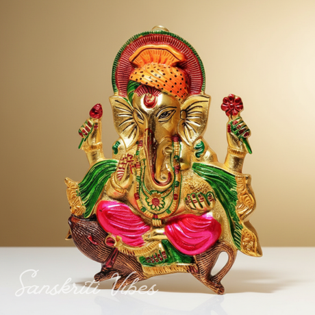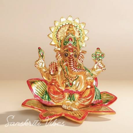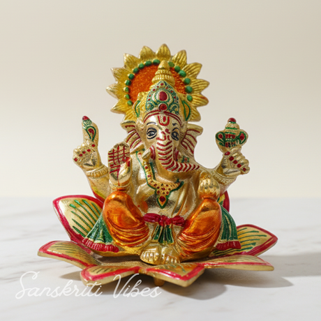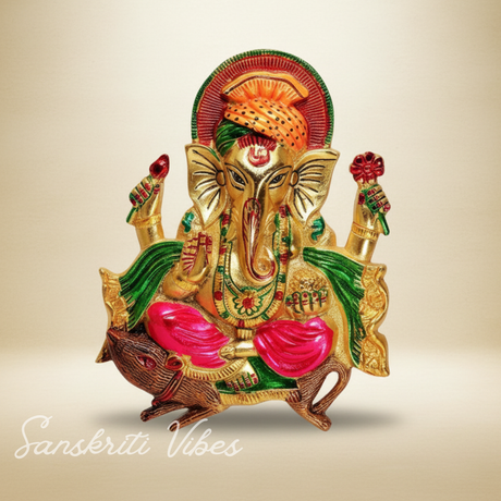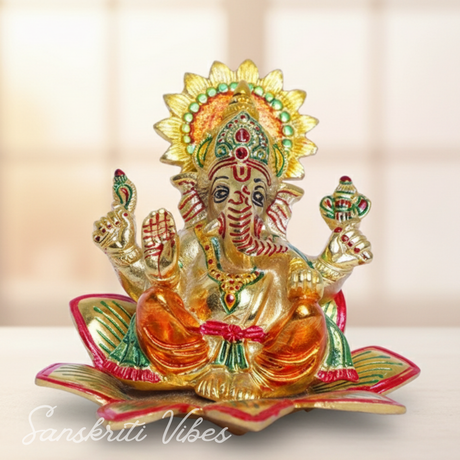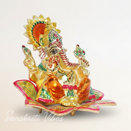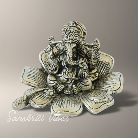 Metal Ganesha Playing Flute Murti Aluminium Ganpati Statue For Home Decor Pooja Room And Gifting
