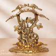 Radha Krishna Playing Flute Under Tree | Gold Antique Metal Idol for Home Décor & Pooja Room