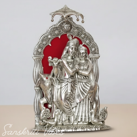 Radha Krishna Aluminium Idol – Glossy Finish Handcrafted Statue for Home Décor & Wedding Gift