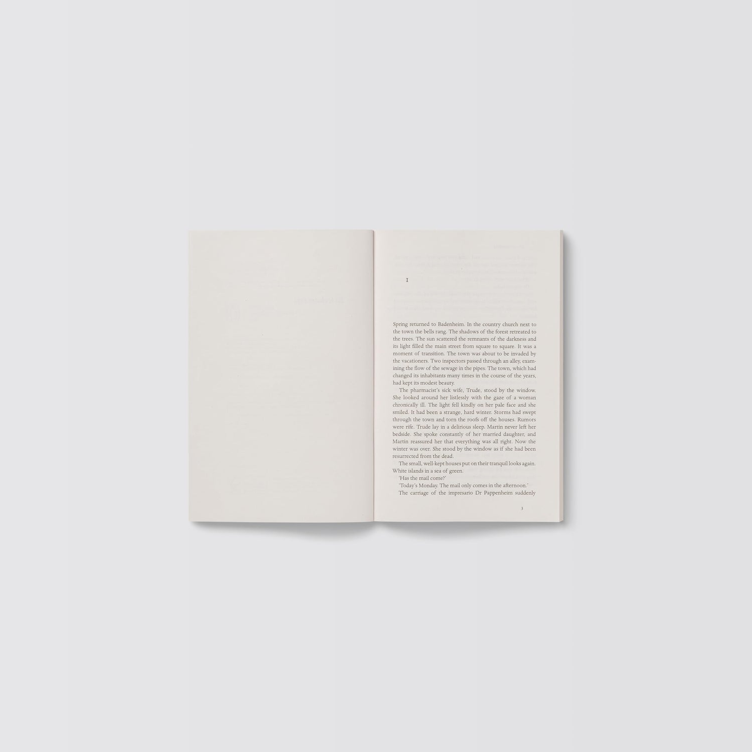 Badenheim, a resort town near the forests of Vienna, is preparing for the arts festival of the summer season. The hotel workers and local tradespeople rush to prepare the small town for the influx of vacationers. But just as the season is getting into full swing, a small note appears on a municipal notice board: the Sanitation Department is announcing an increase in its jurisdiction. No one knows what the Sanitation Department is, but no matter – the festival carries on.