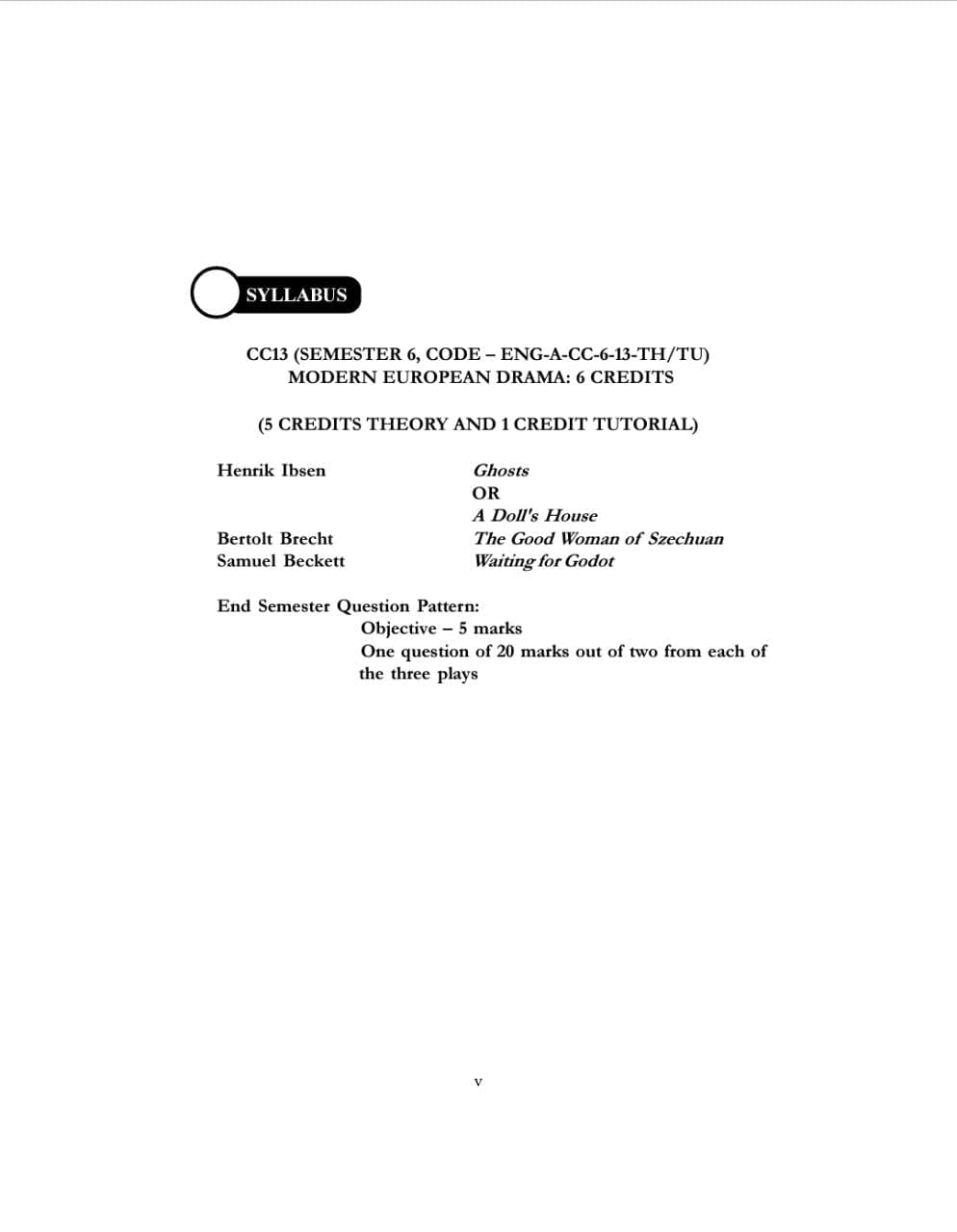 CBCS Modern European Drama CC-13, Semester - 6 (English Version)