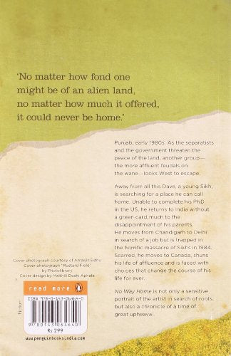 Details: ‘No matter how fond one might be of an alien land, no matter how much it offered, it could never be home.’ Punjab, early 1980s. As the separatists and the government threaten the peace of the land, another group—the more affluent feudal on the wane— looks west to escape. Away from all this Dave, a young Sikh, is searching for a place he can call home. Unable to complete his PhD in the US, he returns to India without a green card much to the disappointment of his parents. He moves from Chandigarh to Delhi in search of a job but is trapped in the horrific massacre of Sikhs in 1984. Scarred, he moves to Canada, shuns his life of affluence and is faced with choices that change the course of his life forever. No Way Home is not only a sensitive portrait of the artist in search of roots, but also a chronicle of a time of great upheaval.