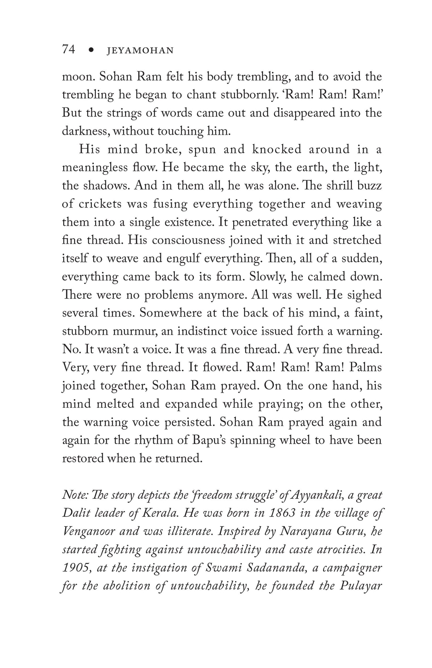 Details: A Fine Thread and Other Stories is a collection of sixteen translated stories originally written in Tamil by the acclaimed author Jeyamohan. Each story explores rich and intriguing territories, ranging from art’s place in spirituality through the dreamy, incredible account of a young monk’s search for atonement for his ancestors’ curse in ‘Shadow Crow’, to the ruthless questions thrown at Mahatma Gandhi’s integrity and rectitude in ‘A Fine Thread’. This collection presents characters in the midst of their personal and global quandaries: we meet two American reporters, who find themselves at the threshold of the Great Russian revolution and the construction of socialism; an obsessed engineer who tries to decipher the conversation of the mountains; a dreamy, native youth who discovers tranquillity in nature; a young girl in search of meaning and exhilaration in this wonder called life. Compellingly narrated, beautifully crafted, and packed with a density of ideas, these stories provide an unflinching glimpse into the kaleidoscopic fictional world of a major Tamil writer of our times.
