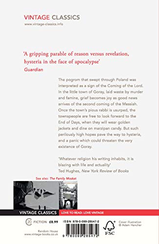 Details: The pogrom that swept through Poland was interpreted as a sign of the Coming of the Lord. In the little town of Goray, laid waste by murder and famine, grief becomes joy as good news arrives of the second coming of the Messiah. Once the town’s pious rabbi is usurped, the townspeople are free to look forward to the End of Days, when they will wear golden jackets and dine on marzipan candy. But such perilously high hopes pave the way to hysteria, and a panic which could threaten the very existence of Goray.