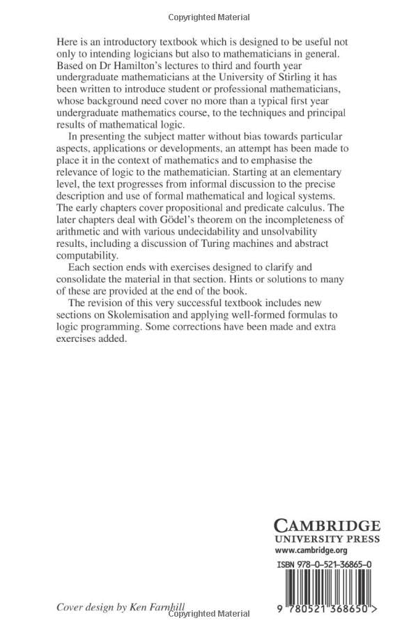 Details: This is an introductory textbook which is designed to be useful not only to intending logicians but also to mathematicians in general.