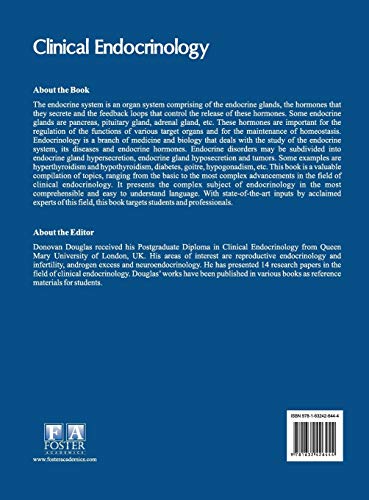 Details: The endocrine system is an organ system comprising of the endocrine glands, the hormones that they secrete and the feedback loops that control the release of these hormones. Some endocrine glands are pancreas, pituitary gland, adrenal gland, etc. These hormones are important for the regulation of the functions of various target organs and for the maintenance of homeostasis. Endocrinology is a branch of medicine and biology that deals with the study of the endocrine system, its diseases and endocrine hormones. Endocrine disorders may be subdivided into endocrine gland hypersecretion, endocrine gland hyposecretion and tumors. Some examples are hyperthyroidism and hypothyroidism, diabetes, goitre, hypogonadism, etc. This book is a valuable compilation of topics, ranging from the basic to the most complex advancements in the field of clinical endocrinology. It presents the complex subject of endocrinology in the most comprehensible and easy to understand language. With state-of-the-art inputs by acclaimed experts of this field, this book targets students and professionals.