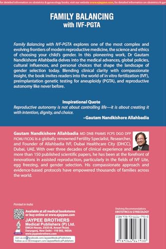 Family Balancing with IVF-PGTA explores one of the most complex and evolving frontiers of modern reproductive medicine, the science and ethics of choosing your child's gender. In this pioneering work, Dr Gautam Nandkishore Allahbadia delves into the medical advances, global policies, cultural influences, and personal choices that shape the landscape of gender selection today. Blending clinical clarity with compassionate insight, the book invites readers into the world of in vitro fertilization (IVF), preimplantation genetic testing for aneuploidy (PGTA), and reproductive autonomy like never before.