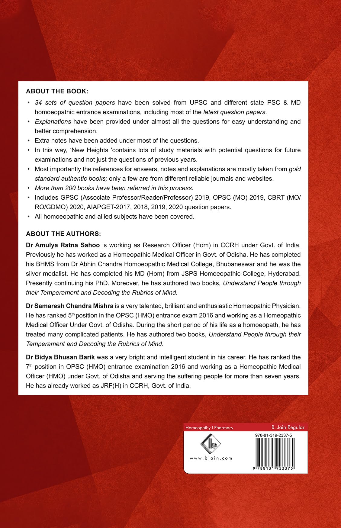 Details: New Heights Volume 2 is an essential resource for students preparing for competitive homoeopathy exams like UPSC, state PSCs, and MD entrance exams. This book covers important subjects such as Organon of Medicine & Homeopathic Philosophy, Practice of Medicine, Surgery and Pathology, Homeopathic Pharmacy, and FMT. It includes over 34 solved question sets from various competitive exams, providing a structured and systematic approach to preparation. With answers, detailed explanations, and extra notes, this volume ensures students have a deep understanding of core concepts. The book draws from over 200 authentic sources, ensuring reliability and accuracy.