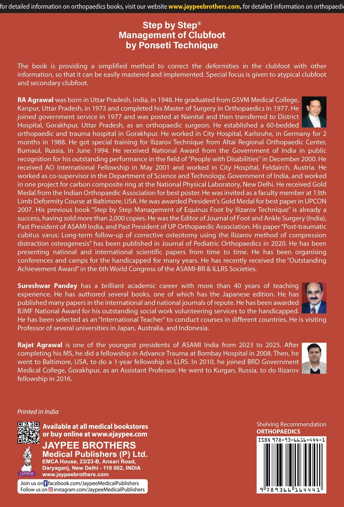 The book is providing a simplified method to correct the deformities in the clubfoot with other information so that it can be easily mastered and implemented. Special focus is given to atypical clubfoot and secondary clubfoot.