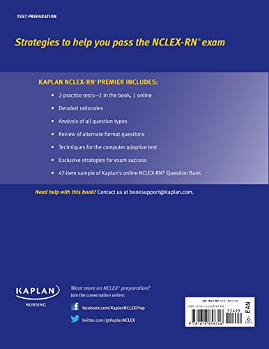 Details: Pass the NCLEX-RN or your money back--guaranteed! NCLEX-RN Premier 2015-2016 with 2 Practice Tests combines Kaplan's unique strategy guide with the most test-like questions available to help you to meet the challenges of this exacting computer-adaptive test, including: