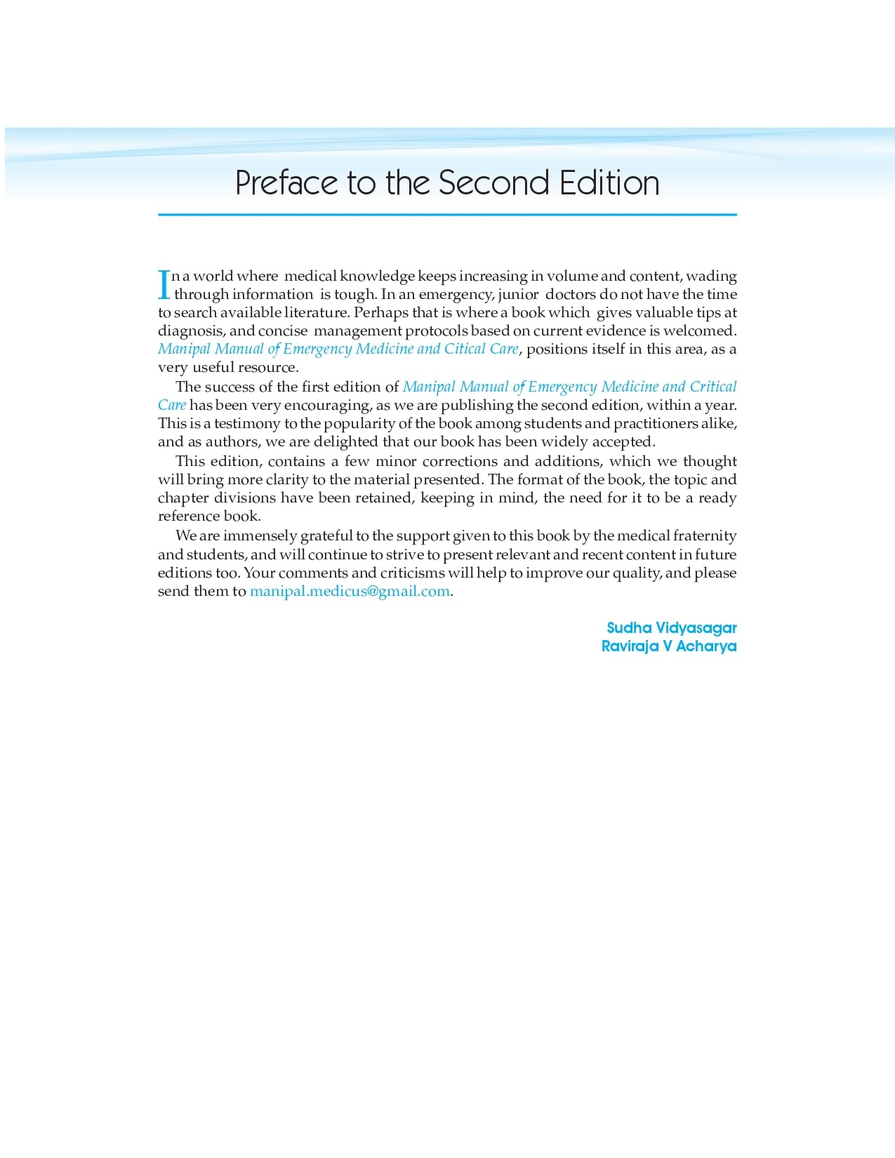 In this edition, retitled Manipal Manual of Emergency Medicine and Critical Care, several chapters have been rewritten and many new ones added. The book retains its clarity and ease of reference due to its simple point-wise description format. The authors have made all attempts to incorporate the best practices in the management of medical illnesses, basing the chapters on standard guidelines. The Manual will continue to hold its unique position among medical books as a concise and dependable source of information.