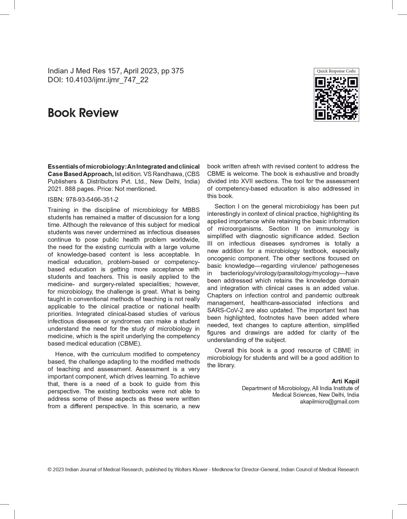 ★ More than 33 general microbiology|infection control and pandemic management and 15 immunology-based clinical vignettes|clinical cases worked out in a systematic fashion to make a sound foundation of medical microbiology.