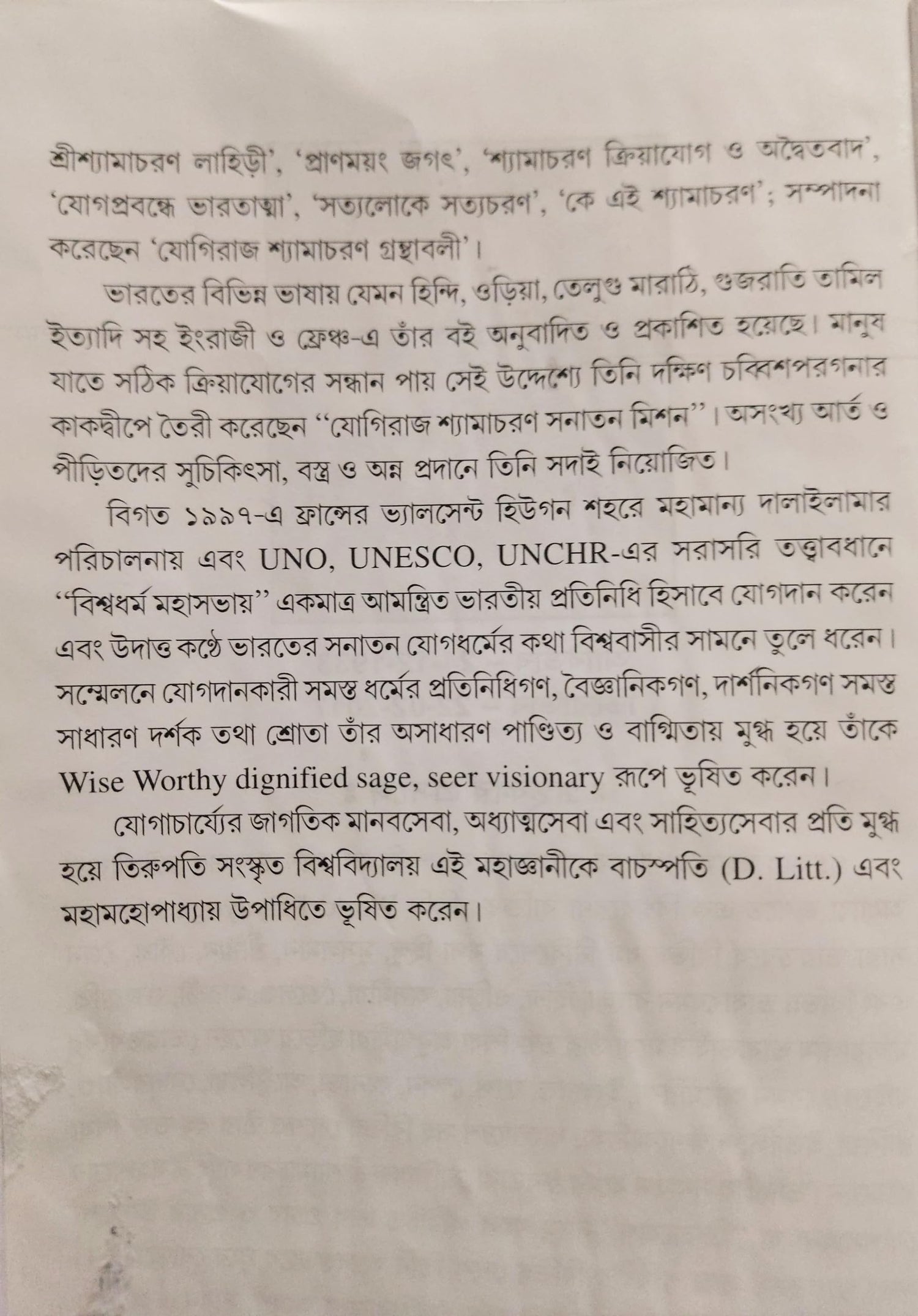 Details: A revolutionary book authored by Ashoke Kr. Chatterjee from the 26 personal diaries of Yogiraj Shri Shyamacharan Lahiri Mahasaya.