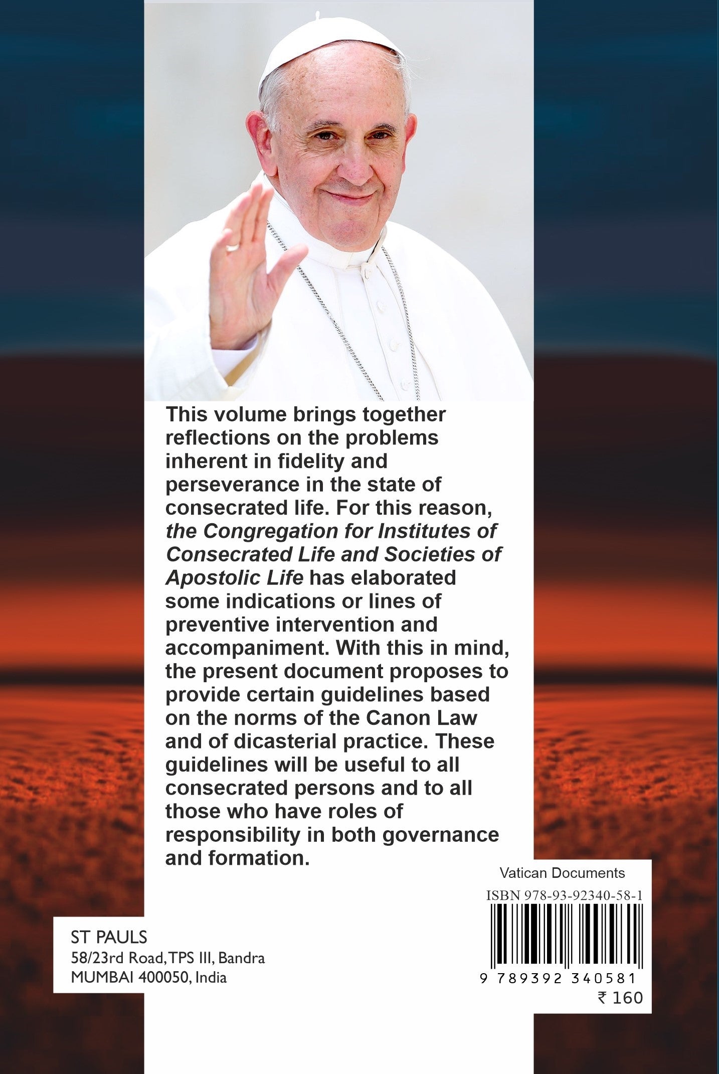 This volume offers reflections on the challenges of fidelity and perseverance within the state of consecrated life. Compiled by the Congregation for Institutes of Consecrated Life and Societies of Apostolic Life, it provides preventive guidelines and intervention strategies based on Canon Law and dicasterial practice. Aimed at fostering a deeper understanding and support for those in consecrated life, the document addresses governance, formation, and the responsibilities of individuals within this vocation. It serves as a valuable resource for those navigating the complexities of commitment and accompaniment in their spiritual journey.