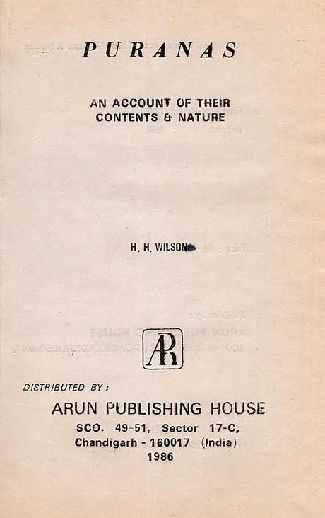 Puranas: An Account of Their Contents & Nature (An Old and Rare Book)