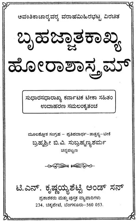 ಬೃಹಜ್ಜಾತಕಾಖ್ಯ ಹೋರಾಶಾಸ್ತ್ರಮ್: Bruhajjatakakhaya – Horasastram (Kannada)