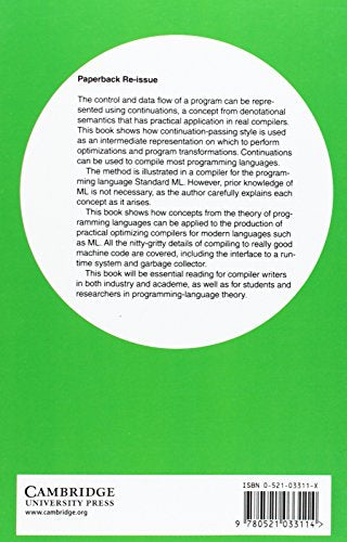 Details: This book shows how continuation-passing style is used as an intermediate representation on which to perform optimisations and program transformations. It will be essential reading for compiler writers in both industry and academe, as well as for students and researchers in programming language theory.