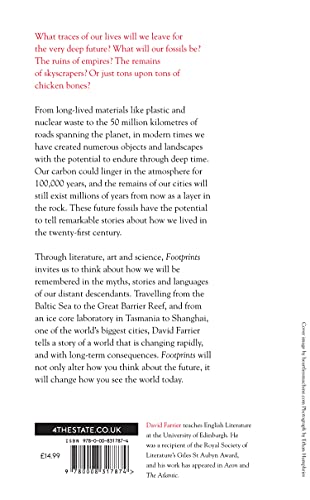 Details: A profound meditation on climate change and the Anthropocene and an urgent search for the fossils―industrial, chemical, geological―that humans are leaving behindA Times Book of the Year • A Daily Telegraph Book of the YearWhat will the world look like ten thousand or ten million years from now? In Footprints, David Farrier explores what traces we will leave for the very deep future. From long-lived materials like plastic and nuclear waste, to the 50 million kilometres of roads spanning the planet, in modern times we have created numerous objects and landscapes with the potential to endure through deep time. Our carbon could linger in the atmosphere for 100,000 years, and the remains of our cities will still exist millions of years from now as a layer in the rock. These future fossils have the potential to tell remarkable stories about how we lived in the twenty-first century. Through literature, art, and science, Footprints invites us to think about how we will be remembered in the myths, stories, and languages of our distant descendants. Travelling from the Baltic Sea to the Great Barrier Reef, and from an ice core laboratory in Tasmania to Shanghai, one of the world’s biggest cities, David Farrier tells a story of a world that is changing rapidly, and with long-term consequences. Footprints will not only alter how you think about the future, it will change how you see the world today.