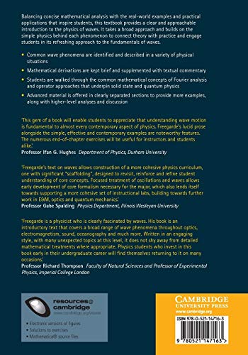 Details: Balancing concise mathematical analysis with the real-world examples and practical applications that inspire students, this textbook provides a clear and approachable introduction to the physics of waves. The author shows through a broad approach how wave phenomena can be observed in a variety of physical situations and explains how their characteristics are linked to specific physical rules, from Maxwell's equations to Newton's laws of motion. Building on the logic and simple physics behind each phenomenon, the book draws on everyday, practical applications of wave phenomena, ranging from electromagnetism to oceanography, helping to engage students and connect core theory with practice. Mathematical derivations are kept brief and textual commentary provides a non-mathematical perspective. Optional sections provide more examples along with higher-level analyses and discussion. This textbook introduces the physics of wave phenomena in a refreshingly approachable way, making it ideal for first- and second-year undergraduate students in the physical sciences.