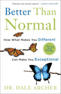 In Better Than Normal, Dr. Archer offers an empowering framework for redefining mental health. Drawing on his 20 years of clinical experience, he describes eight traits of human behavior, each of which occurs along a continuum rather than as a simple on-off switch. These are the aspects of our personality that we worry about the most, but these are also the very things that make us distinctive and different. Filled with engaging anecdotes and practical tools to help readers capitalize on their unique characteristics, Better Than Normal offers a new and liberating way to look at ourselves and others.