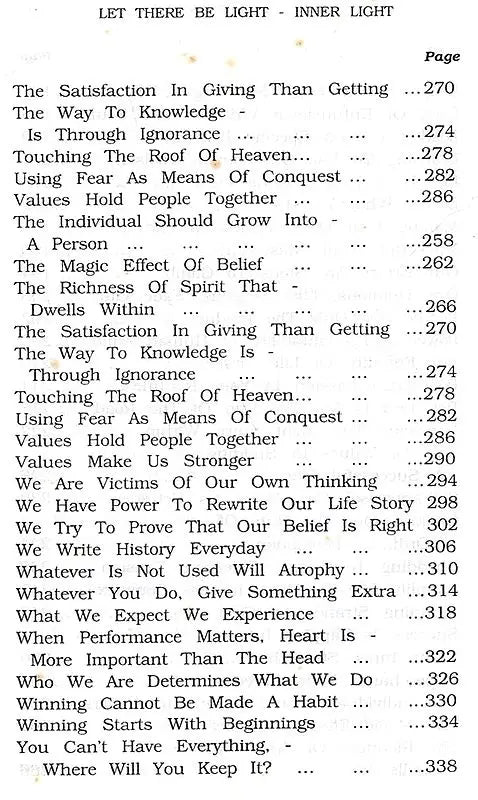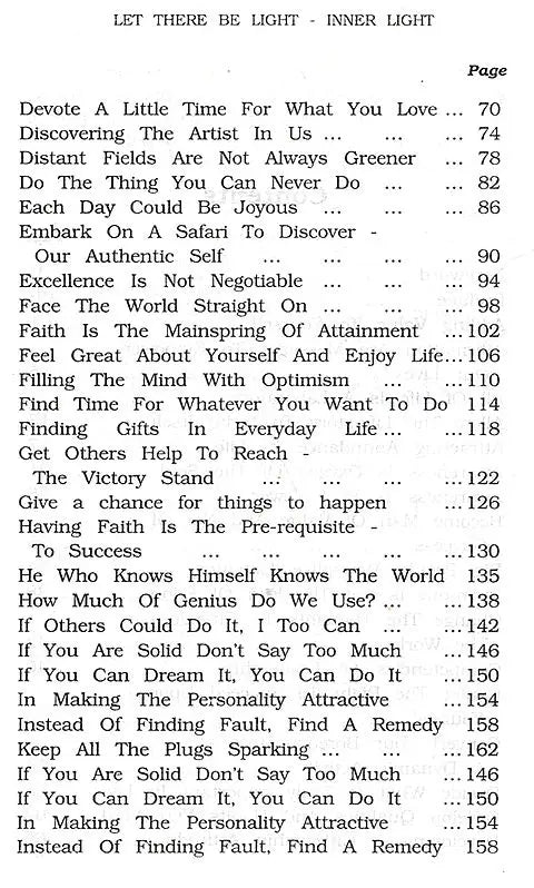 This book, Inner Light, is a compilation of T.G.L. Iyer's popular self-development columns published over the last three decades in renowned newspapers like The Hindustan Times, The Times of India, The Hitavada, Lokmat Times, and Free Press Journal.