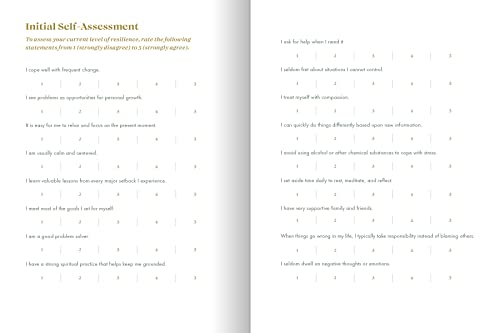 The Resilience Journal starts you on this path with an initial self-assessment using fifteen statements such as “I cope well with change.” Then, through completing the wide range of daily interactive prompts and exercises, you will discover ways to not only cope with difficulties but grow stronger from them. At the end of the journal there’s another self-assessment quiz. Fill it out to see how much your self-knowledge, compassion, patience, and resilience has improved.